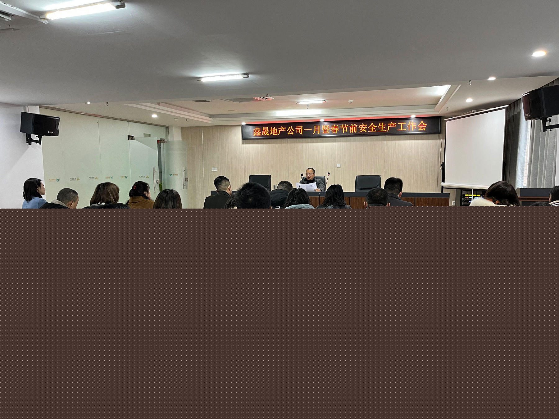 2022年1月26日,瀘州鑫晟房地產(chǎn)開發(fā)有限公司組織召開一月暨春節(jié)前安全生產(chǎn)工作會(huì),會(huì)議由董事長(zhǎng)任東財(cái)主持,公司全體員工參加。