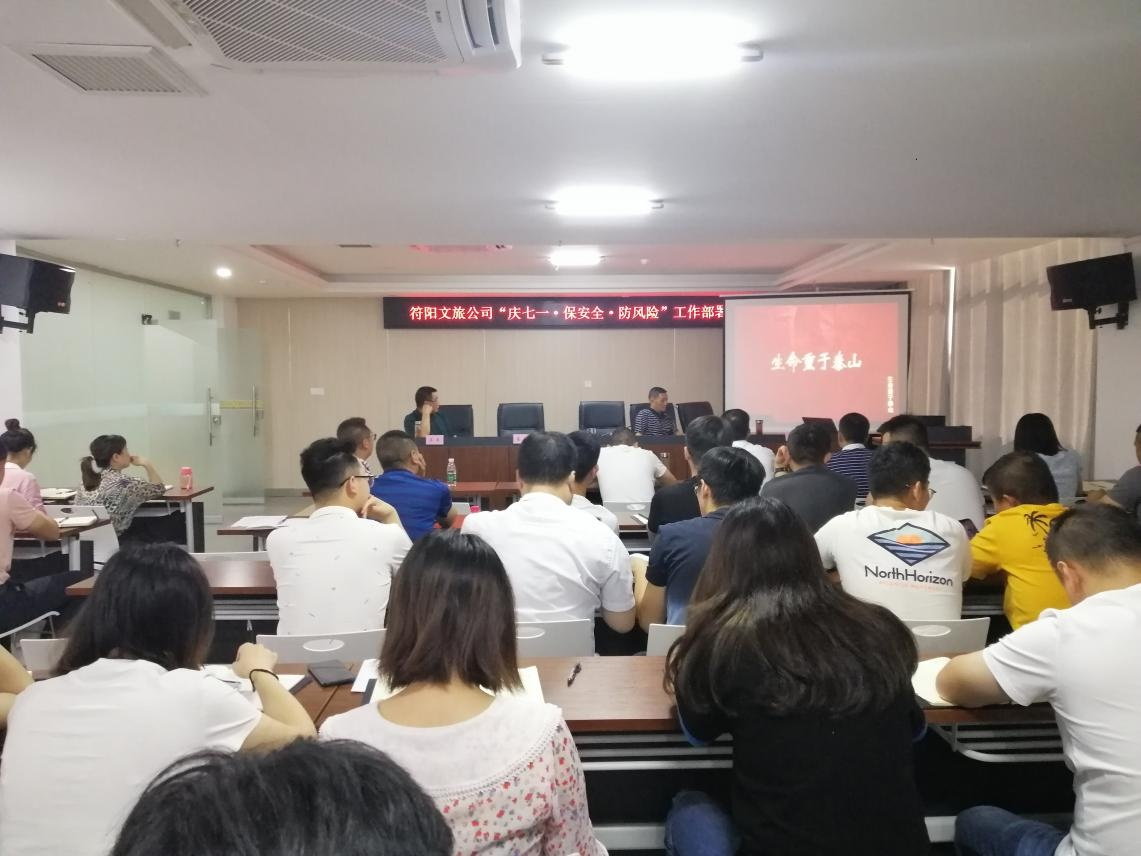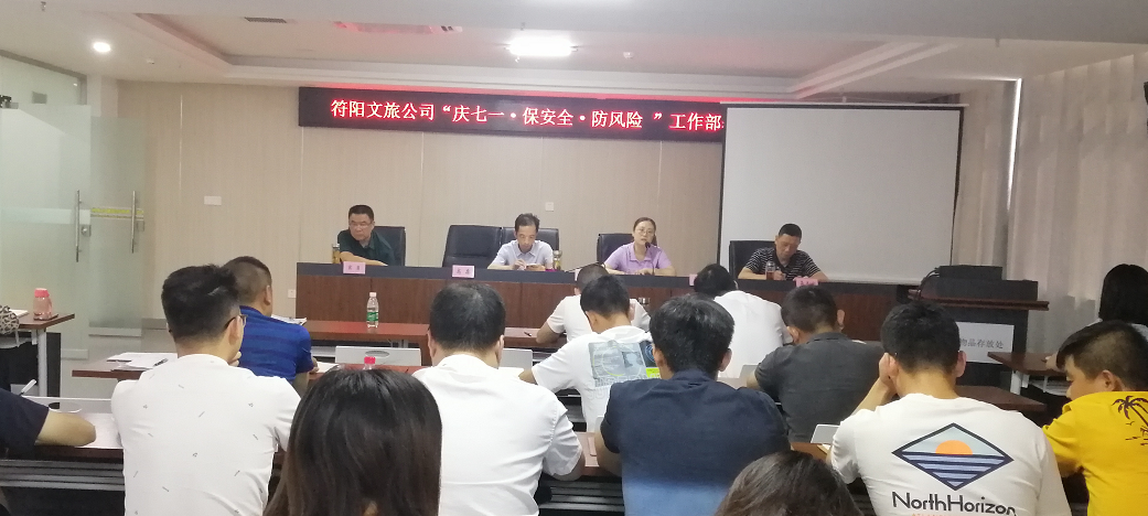 2021年6月23日,符陽(yáng)文旅公司召開(kāi)“ 慶七一·保安全·防風(fēng)險(xiǎn)”工作部署會(huì),阜陽(yáng)集團(tuán)副總胡天華參加會(huì)議,公司總經(jīng)理吳平主持會(huì)議,公司全體員工及龍掛山項(xiàng)目 參建單位項(xiàng)目負(fù)責(zé)人、安全管理人員參加 。