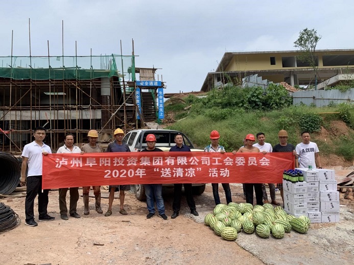 近日,合江持續(xù)高溫,為保障一線人員的身體健康,確保各項生產工作安全有序開展,8月11日,集團公司黨委委員、工會主席袁健,帶領集團黨群紀檢工作部、綜合部先后深入鑫晟學府、殯儀中心、龍掛山景區(qū)等十多個項目建設現場,看望慰問奮戰(zhàn)在一線的工作者,為他們送去清涼物資和關心關愛。