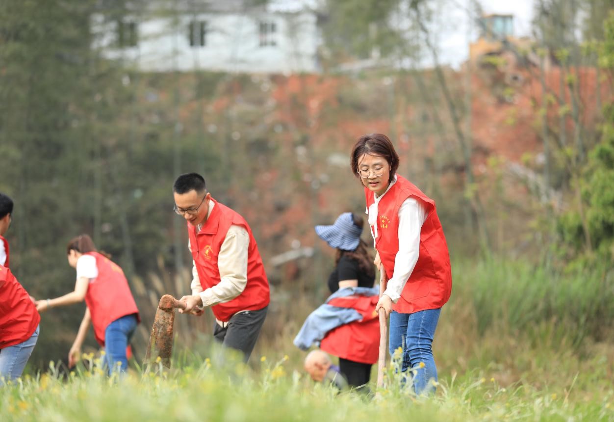在播種現(xiàn)場,公司總經(jīng)理吳平對任務(wù)進(jìn)行了分工,大家迅速行動、相互協(xié)作,清理雜草、揮鍬鏟土、播撒花籽……到處都是忙碌的身影?;顒舆M(jìn)行了近三個(gè)小時(shí),讓原本雜亂的荒地?zé)ㄈ灰恍隆4蠹彝矍斑@片將要綻放新生命的土地,感到無比充實(shí)與快樂。