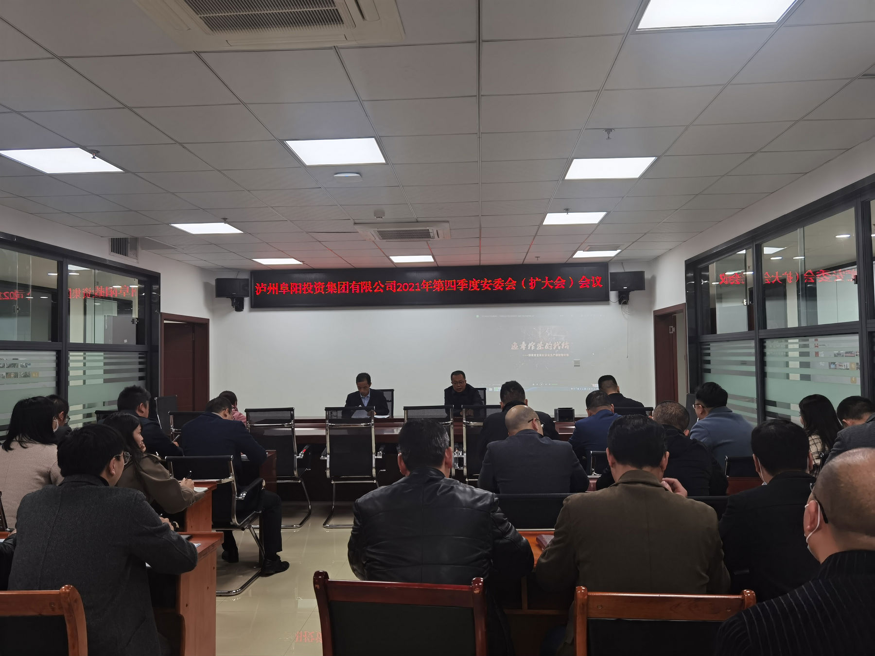 2021 年 10月28日,瀘州阜陽投資集團(tuán)有限公司召開第四季度安委員會(擴(kuò)大會)會議,會議由集團(tuán)副總經(jīng)理胡天華主持,總經(jīng)理任東財(cái)出席,各下屬公司、代管公司安全分管領(lǐng)導(dǎo)及安全員參加。