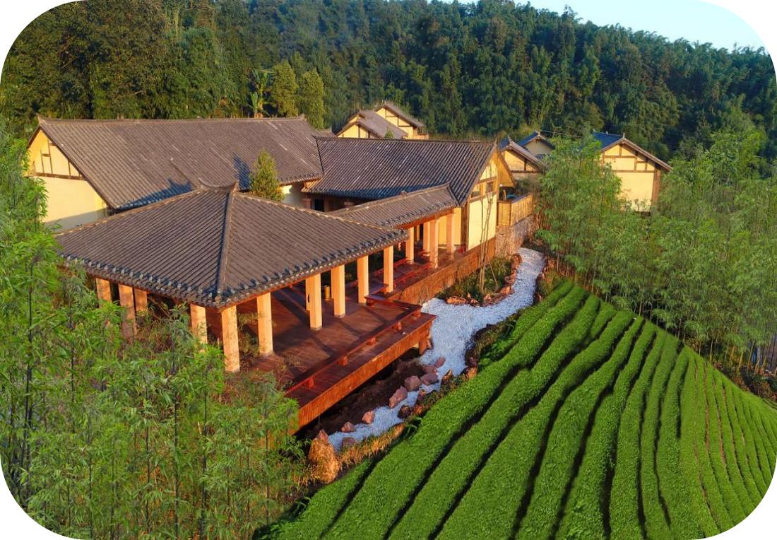 半山云舍建筑面積1246平方米,由六幢具有濃郁川南特色民居風(fēng)格的吊腳小樓與竹林、茶園、水池、庭院等外部景觀組成。設(shè)有辦公區(qū)、景區(qū)規(guī)劃展示大廳、接待服務(wù)區(qū)、住宿與停車等區(qū)塊;配置有景區(qū)管理、景區(qū)招商、地產(chǎn)銷售、來(lái)賓接待等綜合性管理功能,其中設(shè)有1個(gè)能容納50人以上的多功能會(huì)議室,設(shè)有1個(gè)能至少容納10人以上的小會(huì)議室,配有3個(gè)以上男女廁位的公共衛(wèi)生間;建筑設(shè)計(jì)上以當(dāng)?shù)氐牡は技t石、穿斗木構(gòu)等傳統(tǒng)文化因素為精神內(nèi)核,在空間布局上融入落地門窗、觀景平臺(tái)等現(xiàn)代審美元素,匠心打造,風(fēng)格鮮明。