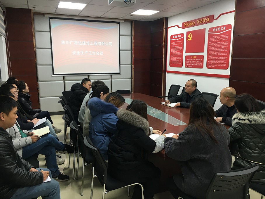 2019年12月31日,四川廣源達(dá)建設(shè)工程有限公司譙棣升董事長主持召開全體員工安全生產(chǎn)工作會(huì)。