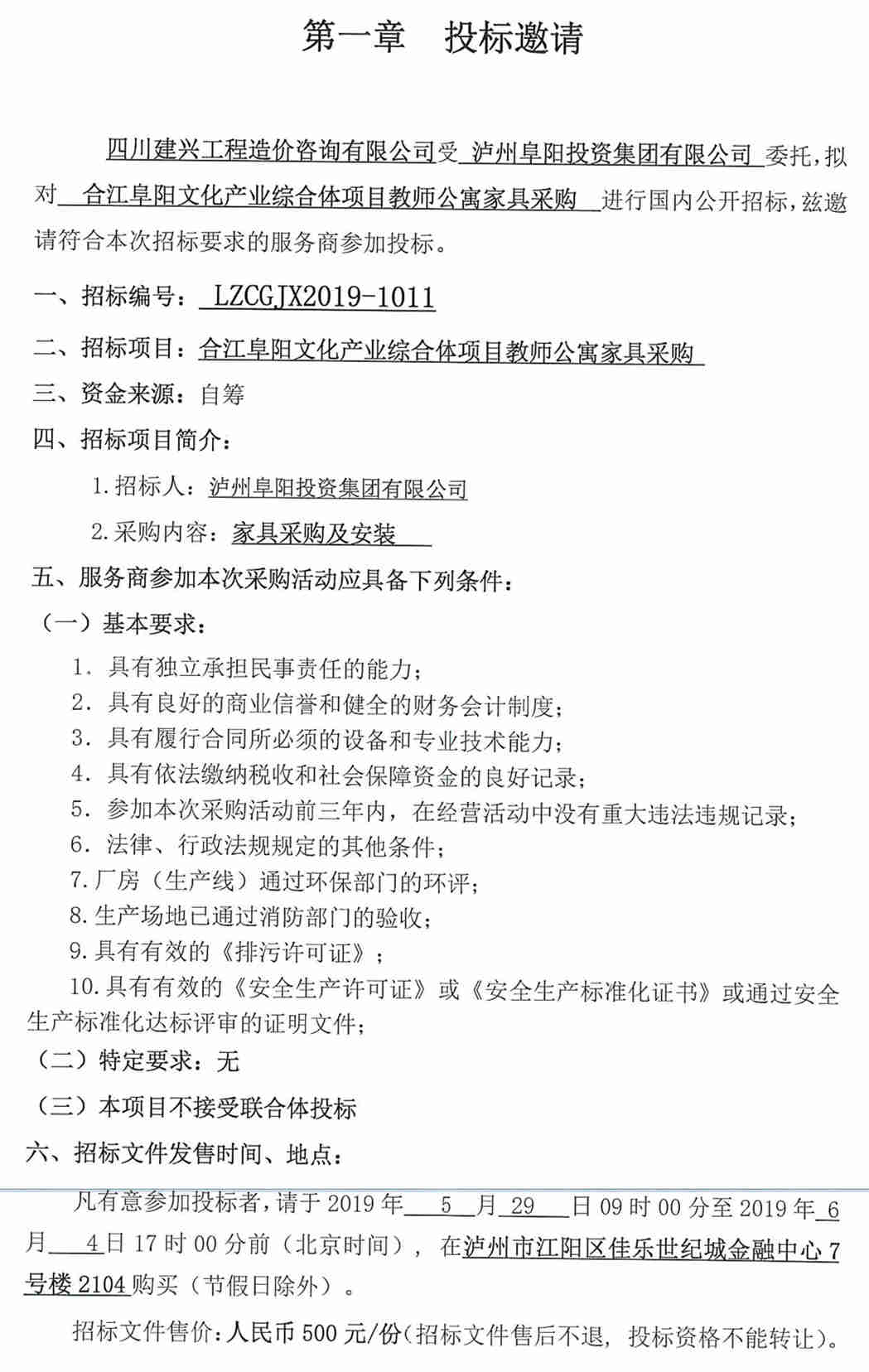 合江阜陽(yáng)文化產(chǎn)業(yè)綜合體項(xiàng)目教師公寓家具采購(gòu)