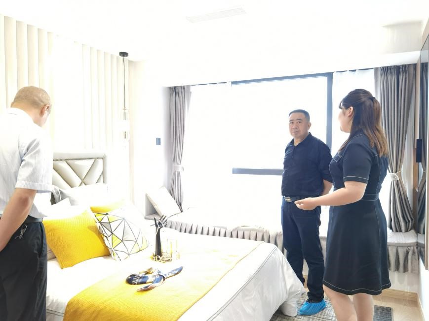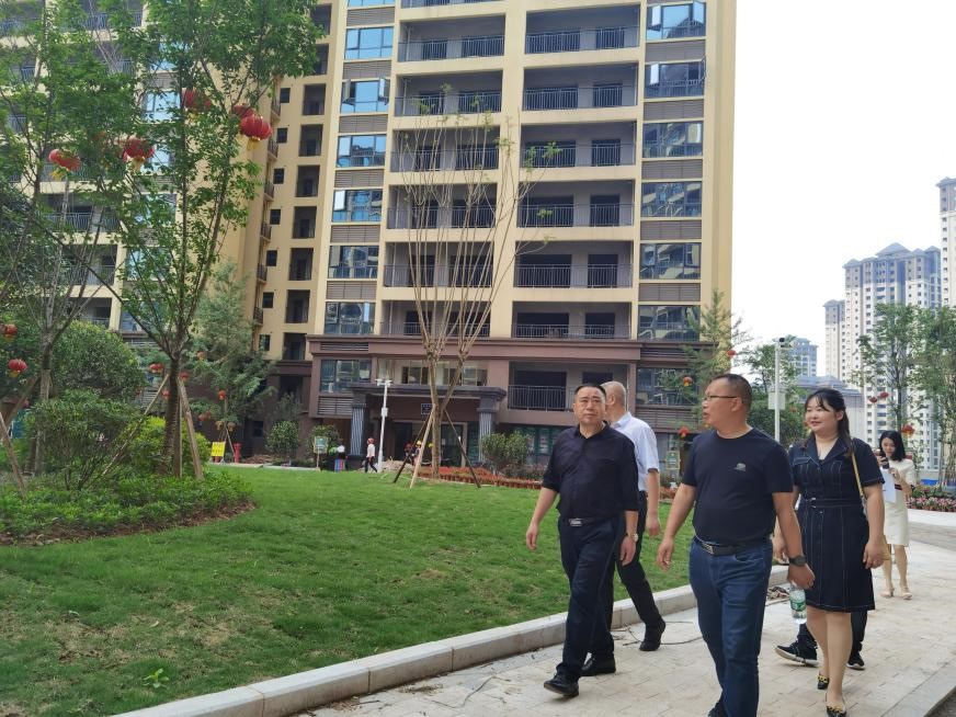 2021年5月11日,財監(jiān)局局長楊向前率隊調(diào)研鑫晟學(xué)府項目建設(shè)銷售情況。調(diào)研組一行實地查看了中庭建設(shè)情況、樣板間裝修情況,并詳細(xì)了解了項目銷售情況。楊局強調(diào):鑫晟學(xué)府項目作為縣國企第一個房開項目,一定要及時完成建設(shè)銷售工作,體現(xiàn)經(jīng)濟效益。