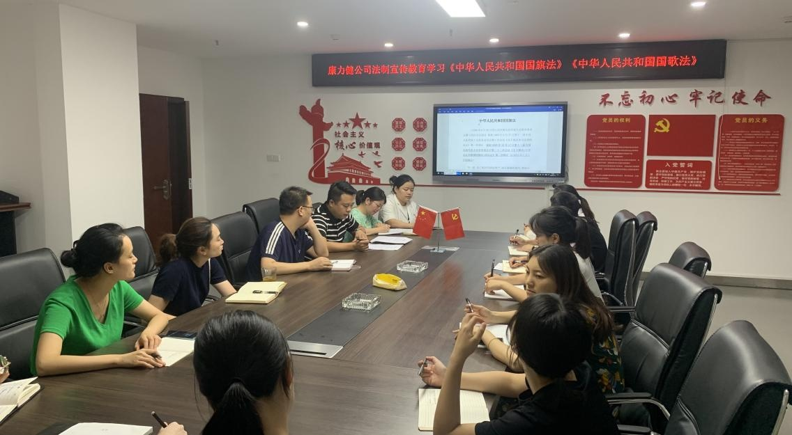 7 月 13 日 下 午 , 康 力 健 公 司 組 織 開(kāi) 展 《 國(guó) 旗 法 》 《 國(guó) 歌 法 》 的宣傳教育和知識(shí)普及活動(dòng),由綜合部部長(zhǎng)賀佳組織召開(kāi)。