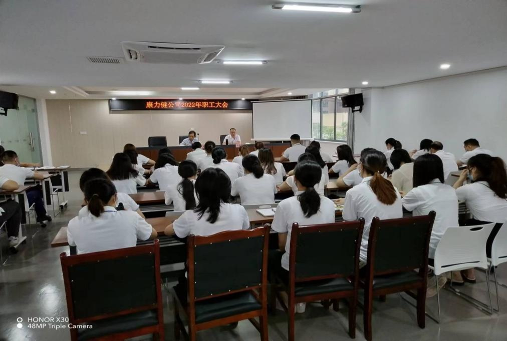 2022 年 6 月 27 日上午,瀘州康力健醫(yī)療投資有限公司 在 公 司 大 會(huì) 議 室 舉 行 2022 年 職 工 大 會(huì) 。 公 司 董 事 長(zhǎng) 胡 天 華 、 總經(jīng)理鄭世來(lái)出席了大會(huì), 并在大會(huì)上發(fā)表重要講話。 本次 大會(huì)分為上半年工作總結(jié)、 下半年工作計(jì)劃及安全生產(chǎn)會(huì)議 三個(gè)部分, 旨在總結(jié)公司上半年的發(fā)展情況, 完善下半年的 發(fā)展計(jì)劃及 “ 對(duì)標(biāo)找差、提能增效 ” 活動(dòng)開(kāi)展情況,鄭世來(lái)總 經(jīng)理提出 : 一是要理清業(yè)務(wù)工作思路,對(duì)目標(biāo)任務(wù)高標(biāo)準(zhǔn)嚴(yán) 要求的貫徹執(zhí)行;二是要強(qiáng)化落實(shí) “ 兩個(gè)責(zé)任 ” ,抓好黨的建 設(shè)和企業(yè)管理。 將組織相關(guān)人員不定期對(duì)公司各崗位履職情 況進(jìn)行檢查監(jiān)督, 發(fā)現(xiàn)問(wèn)題, 立即指出督促整改到位, 建立 健全各項(xiàng)規(guī)章制度, 以制度管人, 推動(dòng)公司各職能部門(mén)履職 盡責(zé), 提升公司盈利能力和盈利水平, 并對(duì)廉潔從業(yè)及安全 生產(chǎn)管理制度進(jìn)行了的宣講。
