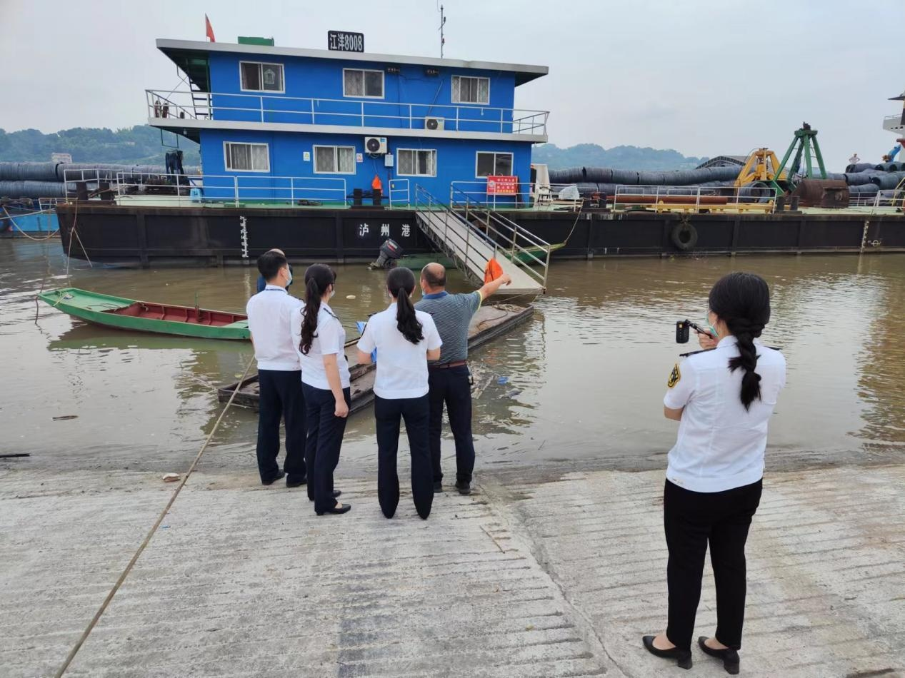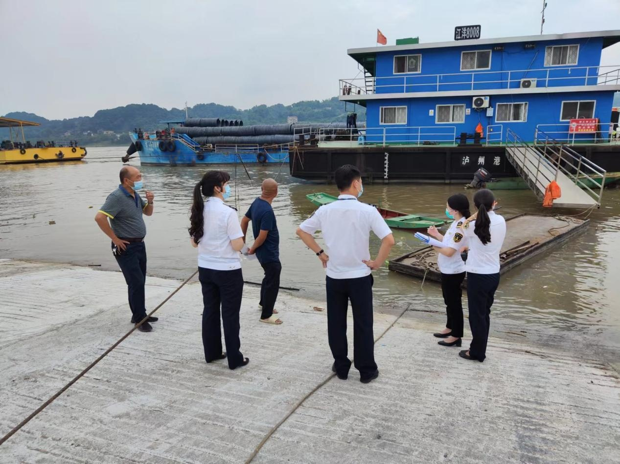 2022 年 6 月 10 日 , 瀘 州 市 交 通 運(yùn) 輸 綜 合 行 政 執(zhí) 法 支 隊(duì) 六大隊(duì)到國瑞港埠民用碼頭檢查安全環(huán)保工作。